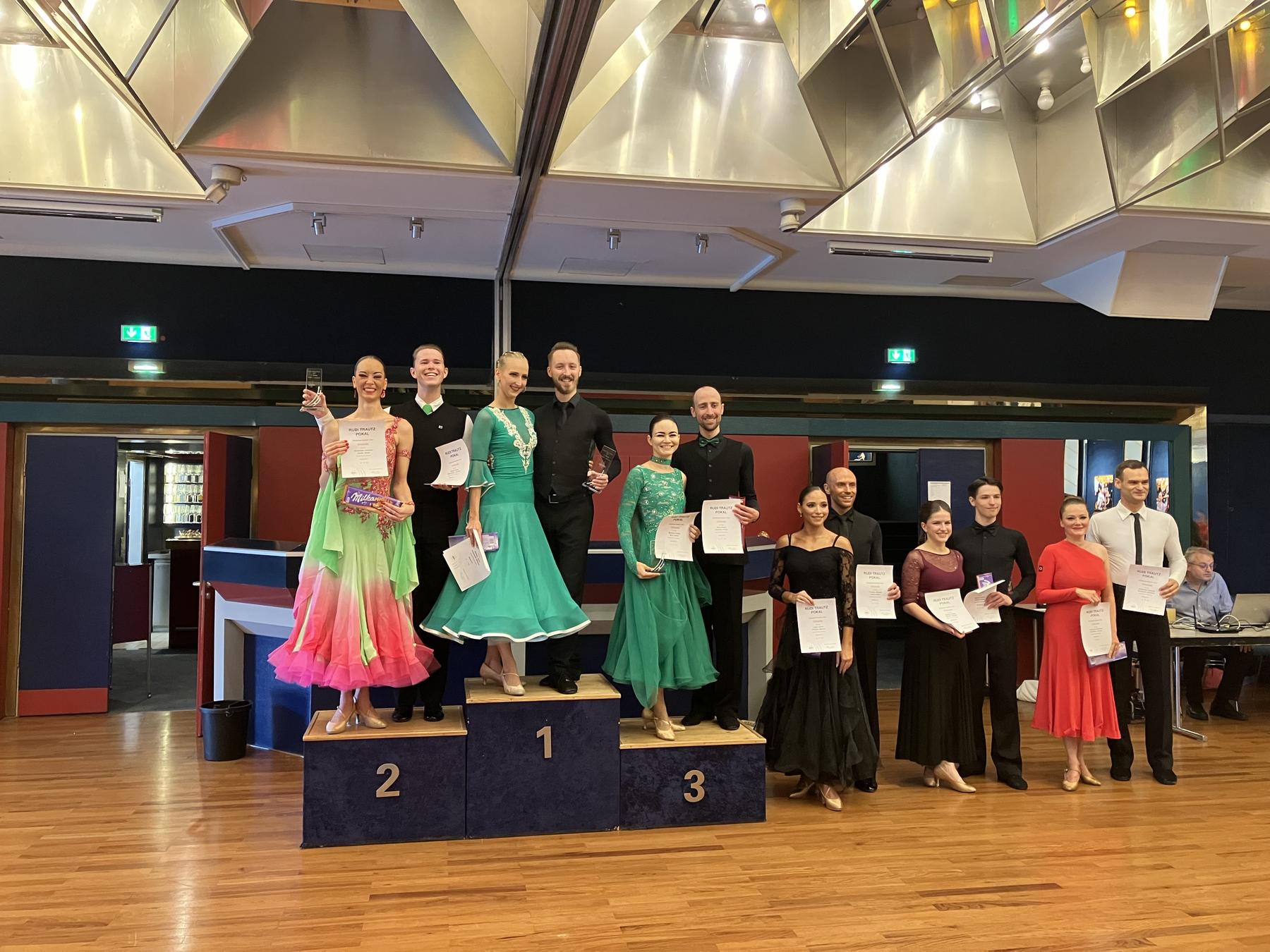 Auch in diesem Jahr hat in den Räumen der Tanzschule Trautz und Salmen wieder das traditionsreiche Herbstturnier stattgefunden, diesmal allerdings wieder unter leicht geändertem Namen: Die Umbenennung in „Rudi Trautz Pokal“ (da ein „Cup“ nicht vergeben, nur verliehen wird – und bei uns darf man Pokale behalten!) hat der Veranstaltung keinen Abbruch getan.